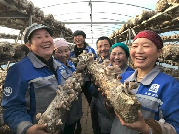 中建二局第二任駐村書記牛軍帥帶領(lǐng)村民種植香菇獲豐收。(受訪者供圖)