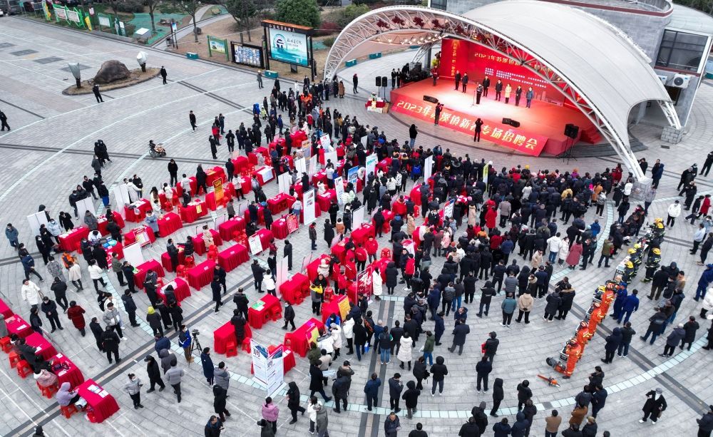 2月4日拍攝的浙江省義烏市蘇溪鎮(zhèn)“百企千崗”新春首場招聘會現(xiàn)場(無人機(jī)照片)。新華社記者 徐昱 攝