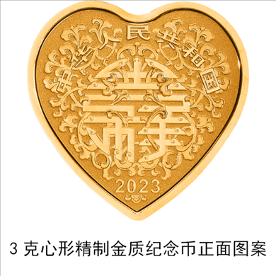 3克心形金質紀念幣為精制幣,含純金3克,外接正方形邊長18毫米,面額50元,成色99.9%,最大發(fā)行量20000枚。