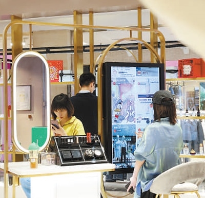 揮揮手臂,站在智能試衣鏡前就能看到多款服飾的“試穿”效果;劃劃屏幕,就能在智能派樣機上選取化妝品小樣;在手機上打開“喵街”應用,各品牌門店的電子地圖導引一目了然……在銀泰百貨西安曲江店,智慧消費場景為消費者帶來了便捷舒適的購物體驗?!拔覀儾粩嗵嵘倘?shù)字化、智能化水平,進一步滿足消費者的多元需求。今年‘五一’假期,我們店的客流量同比增長了228.9%?!便y泰百貨西安曲江店企劃負責人趙曉彤介紹。
