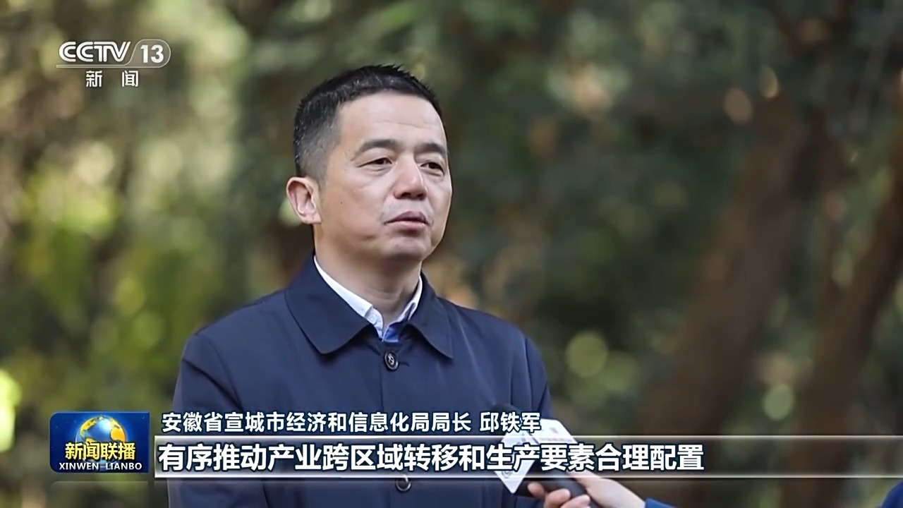 安徽省宣城市經(jīng)濟(jì)和信息化局局長(zhǎng) 邱鐵軍:習(xí)總書(shū)記強(qiáng)調(diào),有序推動(dòng)產(chǎn)業(yè)跨區(qū)域轉(zhuǎn)移和生產(chǎn)要素合理配置。我們發(fā)揮區(qū)位優(yōu)勢(shì),主動(dòng)靠上去、精準(zhǔn)接上去、全力融進(jìn)去,深度參與長(zhǎng)三角產(chǎn)業(yè)鏈供應(yīng)鏈分工合作。