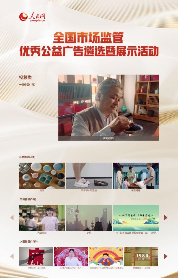 全國市場(chǎng)監(jiān)管優(yōu)秀公益廣告遴選暨展示活動(dòng)(頁面截圖)。