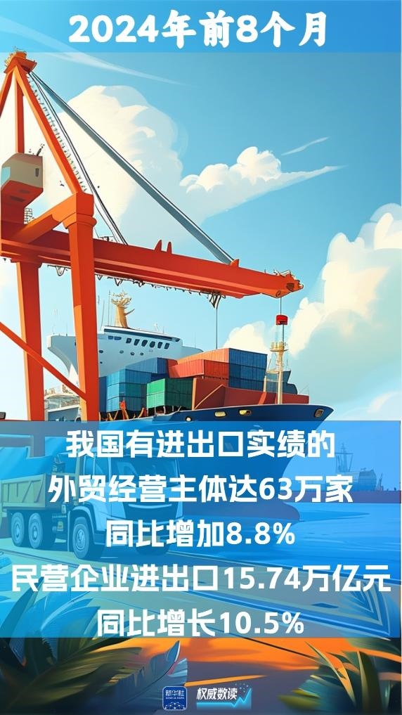 我國(guó)外貿(mào)經(jīng)營(yíng)主體持續(xù)活躍,前8個(gè)月有進(jìn)出口實(shí)績(jī)的外貿(mào)經(jīng)營(yíng)主體達(dá)63萬(wàn)家,同比增加8.8%。其中,外貿(mào)主力軍民營(yíng)企業(yè)進(jìn)出口15.74萬(wàn)億元。