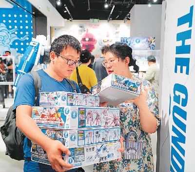 5月17日,北京高達(dá)基地旗艦店在王府井銀泰in88開業(yè),現(xiàn)場成品高達(dá)模型吸引不少市民參觀。圖為消費(fèi)者正在選購。宋家儒攝(人民圖片)