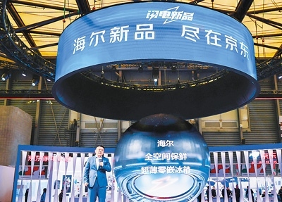 2024年中國家電及消費(fèi)電子博覽會現(xiàn)場,京東攜手海爾等品牌首發(fā)數(shù)十款家電新品。受訪者供圖
