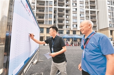 近年來,湖北省襄陽市??悼h持續(xù)改善城市人居環(huán)境、提升城市功能與品位,讓群眾住有所居、安居宜居的夢想不斷成為美好現(xiàn)實(shí)。圖為??悼h新型城鎮(zhèn)化項(xiàng)目國投·梅嶺新居小區(qū)開展分房選房工作時(shí),工作人員在填寫房源分配信息。楊 韜攝(人民視覺)