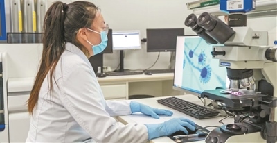 天津市腫瘤醫(yī)院空港醫(yī)院醫(yī)務(wù)人員在化驗樣本。