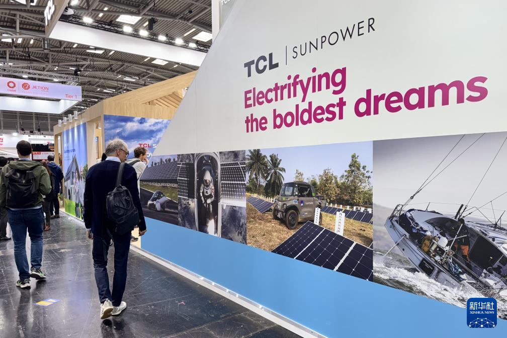 5月7日,參觀者在德國慕尼黑舉行的2025年歐洲國際太陽能展上參觀TCL展區(qū)(手機照片)。新華社記者 黃燕 攝