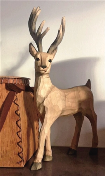 在呼倫貝爾市鄂倫春自治旗一處民族工藝品廠內(nèi),數(shù)十只雕刻完成的木制小鹿擺放得整整齊齊,這是筆插擺件上的重要裝飾品,鄂倫春族手工藝人何國志正在細(xì)心雕刻其中一只。問道為什么雕刻鹿,而不是別的?他說:“興安神鹿是鄂倫春族的向往,看到它就看到了希望。”