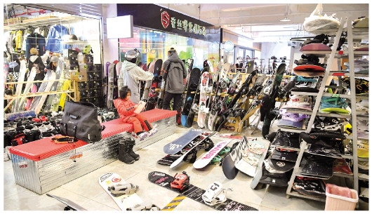 2月14日,在陜西太白縣鰲山滑雪場內(nèi),俱樂部會員在挑選滑雪裝備。新華社記者 邵瑞 攝