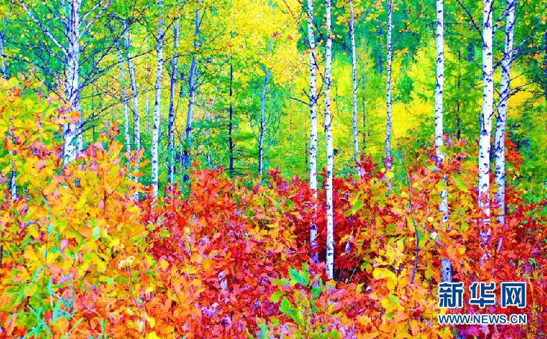 松樹林、白樺林、柞樹林和一片片混交林“染”成不同色彩,茫茫林海宛若一幅匠心獨(dú)運(yùn)的繽紛畫卷。(9月28日攝)新華網(wǎng)發(fā)(欒維敬 攝)