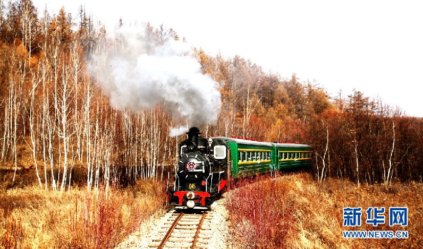 金秋時(shí)節(jié),在內(nèi)蒙古大興安嶺阿里河國家森林公園內(nèi),森林蒸汽機(jī)小火車帶領(lǐng)游客穿越秋季美景。(9月28日攝)新華網(wǎng)發(fā)(欒維敬 攝)