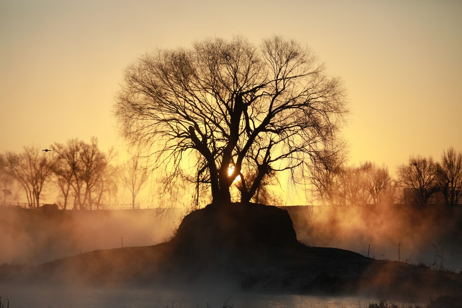 12月15日清晨,上千名游人在呼和浩特玉泉區(qū)班定營村南側(cè)的塞外“千島湖”畔賞景打卡。此處湖水為城市污水經(jīng)處理達標(biāo)后的再生水,隆冬時節(jié),再生水流入湖中,水汽蒸騰,岸邊草木霧凇皚皚,良好的生態(tài)吸引了數(shù)萬只赤麻鴨在此翔集棲息,構(gòu)成一幅生動和諧的美麗畫面。每日清晨,都有上千名游客來此觀日出賞美景。