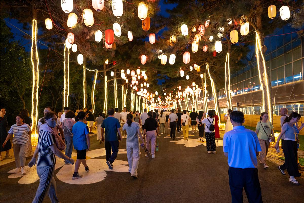 游客可在園中穿梭創(chuàng)意打卡點(diǎn)與景觀涼亭,欣賞璀璨燈光秀;在消費(fèi)體驗(yàn)區(qū)品嘗地道手把肉、奶茶等內(nèi)蒙古特色美食;與非遺代表性傳承人面對(duì)面互動(dòng),學(xué)習(xí)奶食品制作或皮畫(huà)技藝;登上觀景平臺(tái)俯瞰園區(qū),在星空屋體驗(yàn)浪漫寧?kù)o。
