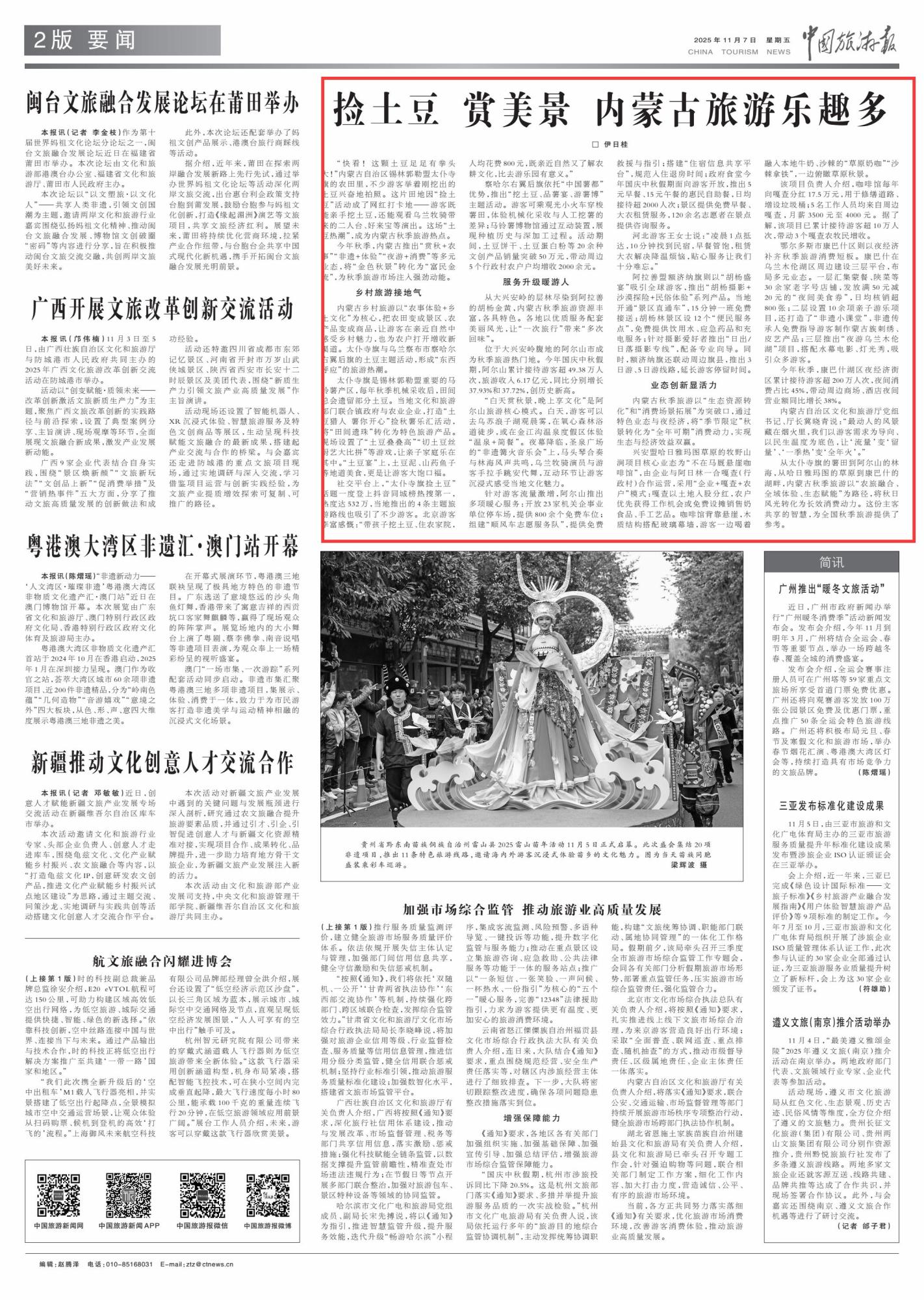 2025年11月7日《中國旅游報》第2版刊發(fā)了《撿土豆 賞美景 內蒙古旅游樂趣多》的文章,報道了今年秋季,內蒙古推出“賞秋+農(nóng)事”“非遺+體驗”“夜游+消費”等多元業(yè)態(tài),將“金色秋景”轉化為“富民金流”,為秋季旅游市場注入強勁動能。