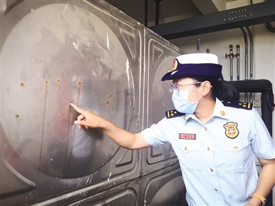 消防監(jiān)督員檢查發(fā)現(xiàn)該小區(qū)高位水箱沙眼較多,無法正常使用。