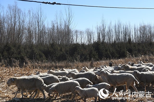 內(nèi)蒙古初冬,暖陽(yáng)微燥。牧民楊寶寶的100多只羊正在院子前的空地上曬太陽(yáng)。雪白的羊群映得小院磚明瓦亮。楊寶寶說(shuō)話(huà)時(shí),嘴角總是上揚(yáng)的,黝黑的皮膚上笑出深深的褶子。