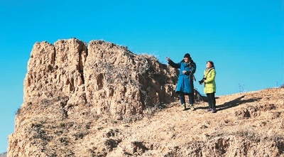 高曉梅(右)在內蒙古烏蘭察布市涼城縣考察長城時向羊倌問路。