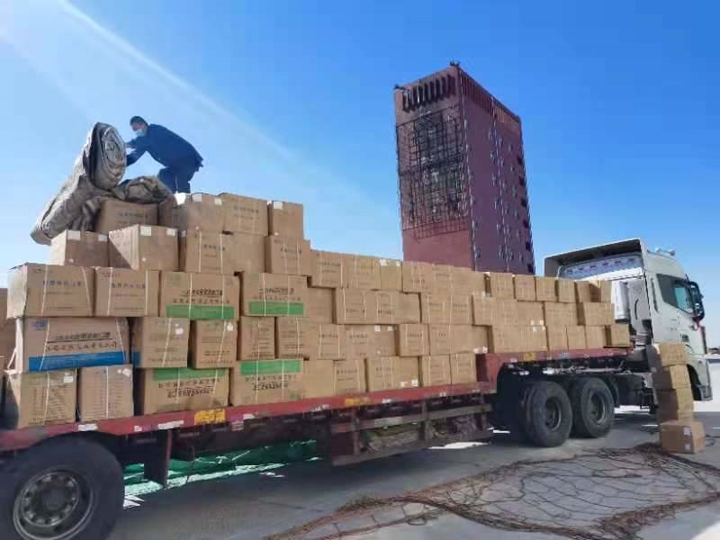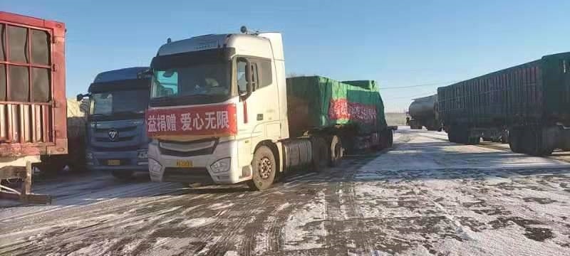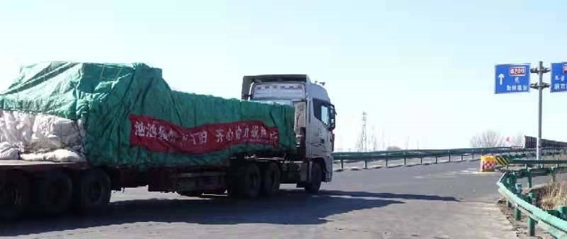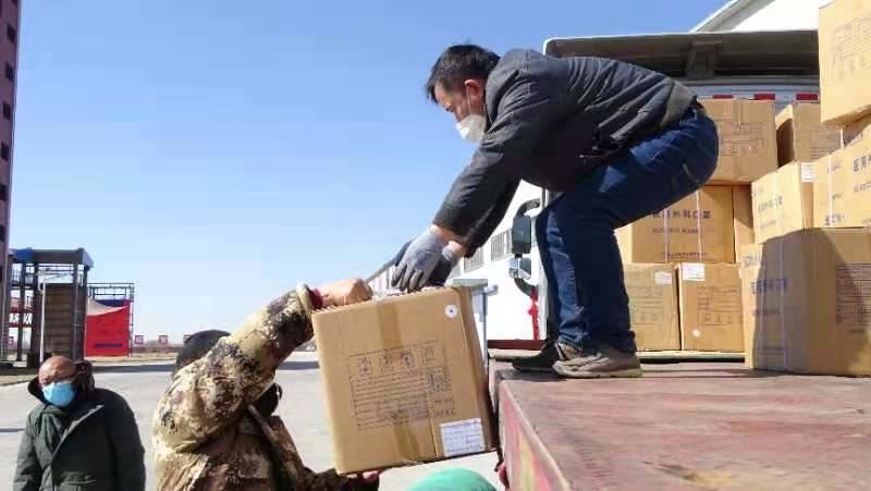 3月1日清晨,錫林郭勒盟至呼和浩特的后山地區(qū)飄著小雪,氣溫在零下10度以下,但是,風(fēng)雪擋不住來(lái)自錫林郭勒大草原的一片片愛。一輛17米帶掛卡車長(zhǎng)驅(qū)千里十多小時(shí),帶著錫林郭勒大草原的問(wèn)候,連夜運(yùn)輸?shù)胶艉秃铺兀粸樵琰c(diǎn)送達(dá)100萬(wàn)只一次性醫(yī)用外科口罩。這輛卡車上掛著內(nèi)容為“祝青城人民早日戰(zhàn)勝疫情,錫盟公益助力呼和浩特市”和“洶洶疫情不可怕,齊心協(xié)力戰(zhàn)勝它”的條幅,表達(dá)“中國(guó)馬都”向“中國(guó)乳都”的真切問(wèn)候。
