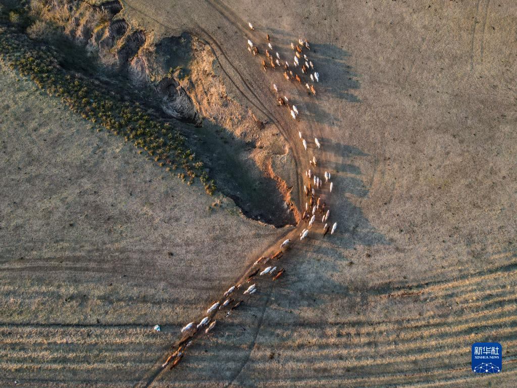 5月17日,錫林郭勒盟西烏珠穆沁旗的牧民在夕陽下馴馬。