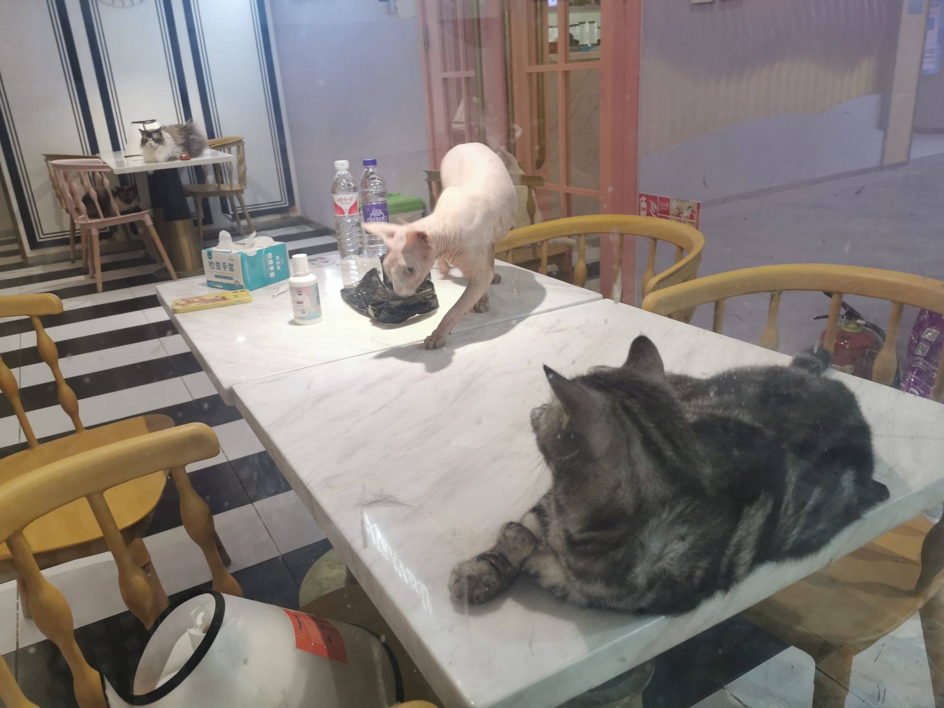 7月1日下午,記者來到貓小院貓咖,大門緊鎖,貼著暫停營業(yè)的字樣。店內(nèi)昏暗無光,無人在場(chǎng)管理,透過玻璃櫥窗可以看到地面堆滿貓毛和污漬,甚至有打翻倒扣在地面的飲料杯,隔著門縫可以聞到明顯異味,幾十只貓咪滯留在店內(nèi),無精打采,有些貓咪的耳鼻眼處明顯存在淚痕、黑痂,疑似患有耳螨、鼻支等病。記者注意到,該店在美團(tuán)上的套餐已下架,撥打店內(nèi)座機(jī)顯示“電話已欠費(fèi)停機(jī)”,無法與店主取得聯(lián)系,記者與周邊其他店主進(jìn)行溝通后了解到,該店疑似存在拖欠房租、人員工資等情況,貓咪留在店內(nèi)無法帶走,有人會(huì)定期進(jìn)行照料?!耙婚_門附近的店都得關(guān)門”,周邊商戶抱怨道。
