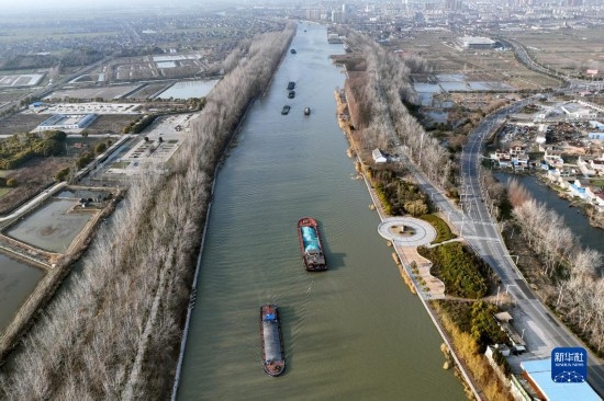 2月16日,貨船行駛在京杭大運(yùn)河江蘇蘇州段。