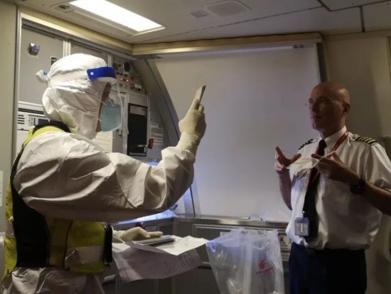 圖為譚家海在開(kāi)展航班查驗(yàn)勤務(wù)。