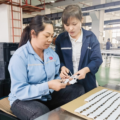 “沒問題,發(fā)微信跟我說就行!”黃富安爽快回答。他告訴記者,自己既是指導工,也是質檢員,這兩條“媽媽崗”生產線和工廠其他車間沒什么區(qū)別。“質量要求都一樣,就是工作時間更加靈活彈性,工作安排更加人性化,方便女職工照顧小孩?!?/P>