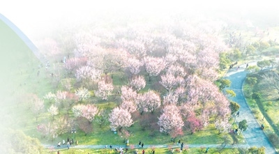 江蘇省揚(yáng)州市蜀岡西峰生態(tài)公園內(nèi),市民們?cè)谫p花游玩。 劉江瑞攝(人民視覺(jué))