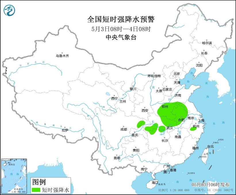 中央氣象臺(tái)5月3日06時(shí)繼續(xù)發(fā)布強(qiáng)對(duì)流天氣藍(lán)色預(yù)警: