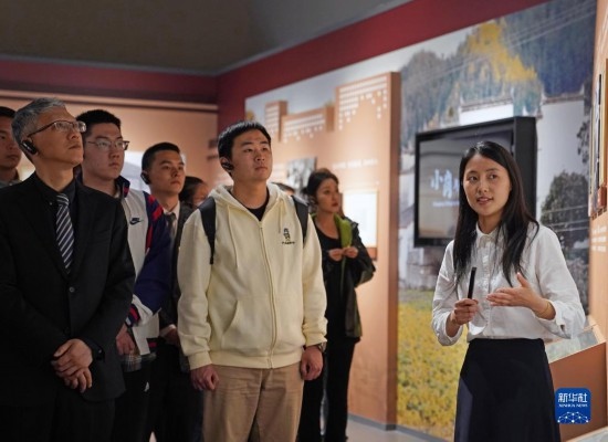 4月28日,在上海市檔案館的展廳內(nèi),編研部工作人員戴舒(右一)為參觀(guān)者講解。檔案館的青年組成“上海市檔案館青年檔案文化志愿宣講團(tuán)隊(duì)”,常年擔(dān)任館內(nèi)展覽的志愿講解員。