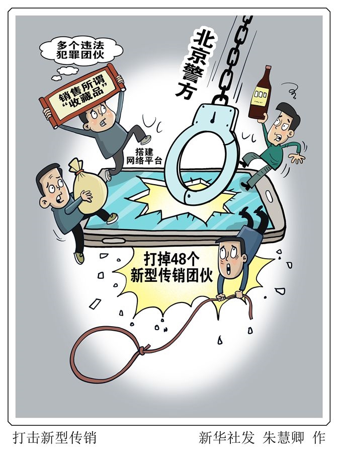新華社北京5月13日電(記者魯暢、吳文詡)“5·15”全國公安機關(guān)打擊和防范經(jīng)濟犯罪宣傳日來臨之際,北京警方通報去年以來針對新型傳銷團伙打擊情況:多個違法犯罪團伙通過搭建網(wǎng)絡(luò)平臺銷售所謂“收藏品”,并通過招募會員,循環(huán)售賣炒至高價,造成“底層會員”承擔高額損失,已有48個團伙被打掉。