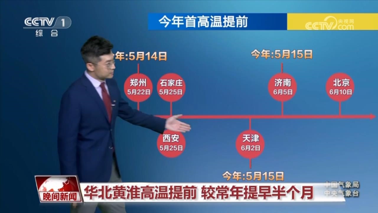 這輪高溫天氣過程,要比常年同期相對偏早。城市當中,鄭州在5月14日,以及天津和濟南在5月15日都已經(jīng)出現(xiàn)了首個高溫日,而5月16日,石家莊和北京也有可能會出現(xiàn)高溫,要比常年同期偏早半個月左右。