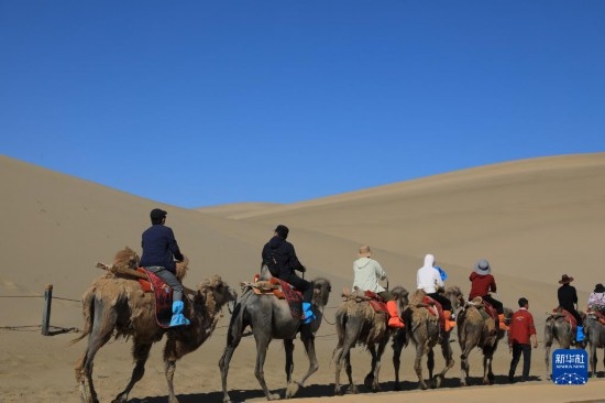 眼下正值甘肅省敦煌市旅游旺季,世界文化遺產(chǎn)莫高窟和沙漠奇觀鳴沙山月牙泉景區(qū)等地持續(xù)吸引游客前來參觀游覽。截至6月7日,敦煌市今年累計接待游客超135.5萬人次。