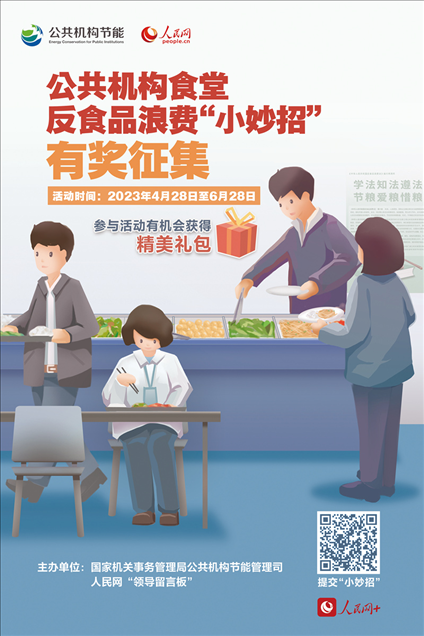 “推出小份菜”“飯菜稱重計(jì)價(jià)”“借助大數(shù)據(jù)合理備餐”……公共機(jī)構(gòu)食堂反食品浪費(fèi),你還有什么“小妙招”?4月28日起,國(guó)家機(jī)關(guān)事務(wù)管理局公共機(jī)構(gòu)節(jié)能管理司、人民網(wǎng)通過“領(lǐng)導(dǎo)留言板”聯(lián)合推出“公共機(jī)構(gòu)食堂反食品浪費(fèi)‘小妙招’有獎(jiǎng)?wù)骷被顒?dòng),面向全社會(huì)征集黨政機(jī)關(guān)、學(xué)校、醫(yī)院等公共機(jī)構(gòu)食堂反食品浪費(fèi)的妙招、實(shí)招、硬招?;顒?dòng)推出后,各地群眾積極建言獻(xiàn)策,一起來看看吧!