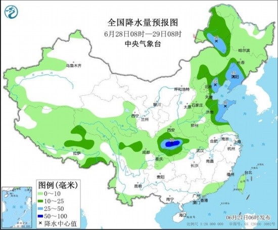 圖3 全國降水量預報圖(6月28日08時-29日08時) 圖自中央氣象臺網站