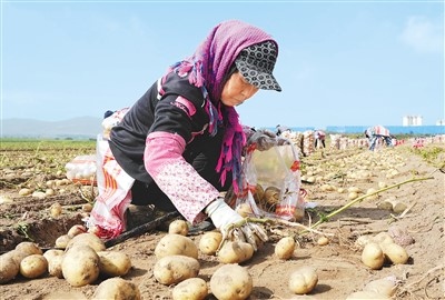 河北省圍場(chǎng)滿族蒙古族自治縣御道口鎮(zhèn)御道口村,一家馬鈴薯種植合作社社員在收獲馬鈴薯。 新華社記者 楊世堯攝 |