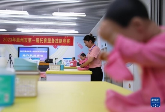 這是7月8日拍攝的托育服務技能競賽現(xiàn)場。