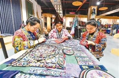 在苗族聚居的貴州,近年來將這一文化瑰寶作為產業(yè)大力推動發(fā)展,婦女們背著娃、繡著花、養(yǎng)活自己養(yǎng)活家,不僅用一針一線“繡”出美好生活,還將蘊藏著古老文化的苗繡巧妙融入時尚元素,形成產業(yè)融合互動。如今,古老的苗繡日益走進大眾生活,煥發(fā)蓬勃生機。
