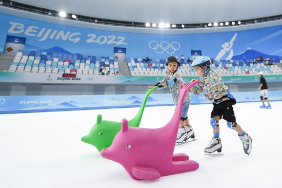 7月1日,小朋友在國(guó)家速滑館“冰絲帶”游玩。新華社記者 鞠煥宗 攝