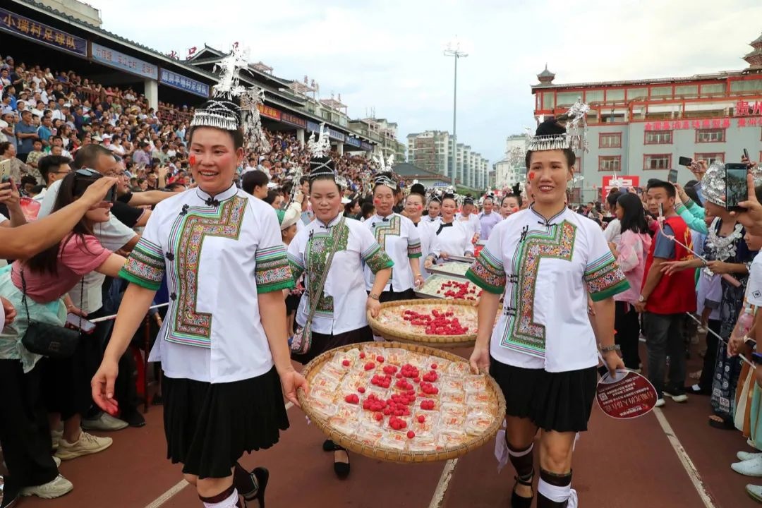 接下來,榕江還將打造“體育+美食”品牌,8月份將開啟貴州“村超”全國美食足球友誼賽,共有276支足球隊參賽,來自廣東、福建、河北、四川等多地,其中大部分足球隊的名稱以當(dāng)?shù)鬲毦叽硇缘氖澄飦砻?,比如揚州炒飯足球隊、南京鹽水鴨足球隊、文昌椰子雞足球隊等,球隊將帶著地方美食來進行交流。