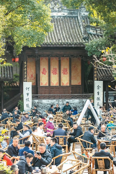 7月的最后一個(gè)周末,金瑾約上同事來了一場(chǎng)“說走就走”的旅行,從北京飛抵成都,位于成都人民公園里的鶴鳴茶社是她們的第一站。“很多成都旅游攻略都提及鶴鳴茶社,我一直很想去那里體驗(yàn)成都的‘慢生活’。”金瑾說,坐在竹椅子上,面前擺著白瓷蓋碗茶,身邊有人“擺龍門陣”,不時(shí)有掏耳朵的手藝人在身旁茶座間穿行?!霸谶@里待上一整天,‘巴適得板’!”