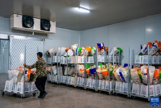 在云天化晉寧花卉產(chǎn)業(yè)現(xiàn)代化示范園內(nèi),一名花農(nóng)將新采摘的鮮花推入冷庫進行預(yù)冷處理(7月12日攝)。新華社記者 陳欣波 攝