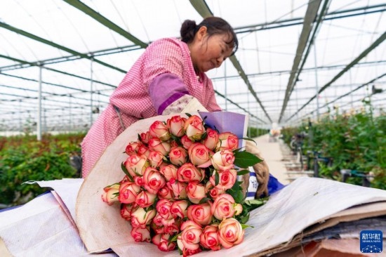 清晨,在云南省昆明市晉寧區(qū)云天化晉寧花卉產(chǎn)業(yè)現(xiàn)代化示范園內(nèi),品類各異的鮮花競相綻放,花農(nóng)們在現(xiàn)代化大棚里忙著采摘、搬運。云天化晉寧花卉產(chǎn)業(yè)現(xiàn)代化示范園是集育苗、智能溫室大棚、水肥一體化、無土綠色栽培、全程數(shù)字化管理系統(tǒng),以及鮮切花采后處理、預(yù)冷儲藏等為一體的高標(biāo)準(zhǔn)設(shè)施農(nóng)業(yè)產(chǎn)業(yè)園區(qū),年產(chǎn)鮮切花1.6億枝。