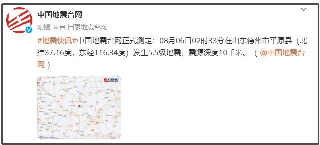 【8點(diǎn)見】山東德州市平原縣發(fā)生5.5級(jí)地震 多地震感強(qiáng)烈
