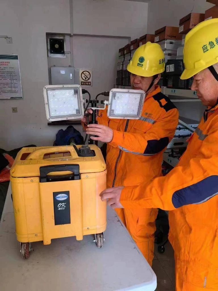 在鳳城市藍(lán)旗鎮(zhèn)廣勝村小學(xué)臨時安置點(diǎn),藍(lán)旗鎮(zhèn)供電所工作人員正在調(diào)試應(yīng)急照明設(shè)備。(國網(wǎng)丹東供電公司供圖)
