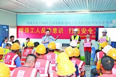 浙江杭州民警為外來務工人員講解防范電信網絡詐騙知識。新華社發(fā)
