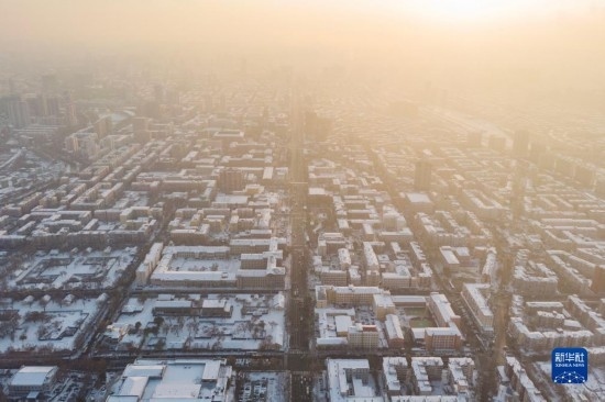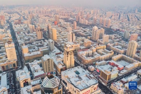 這是11月9日拍攝的哈爾濱主城區(qū)雪景(無人機照片)。