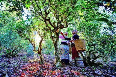 古茶樹下的采茶姑娘。盧磊攝