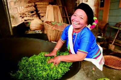 手工制作茶葉。譚春攝